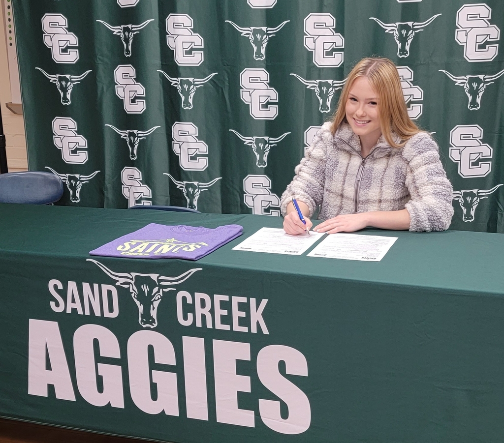 Congratulations to Kaitlyn Comar! She signed with Lourdes University where she will be part of their bowling program. She was joined by her parents and Sand Creek bowling coaches to mark this milestone.